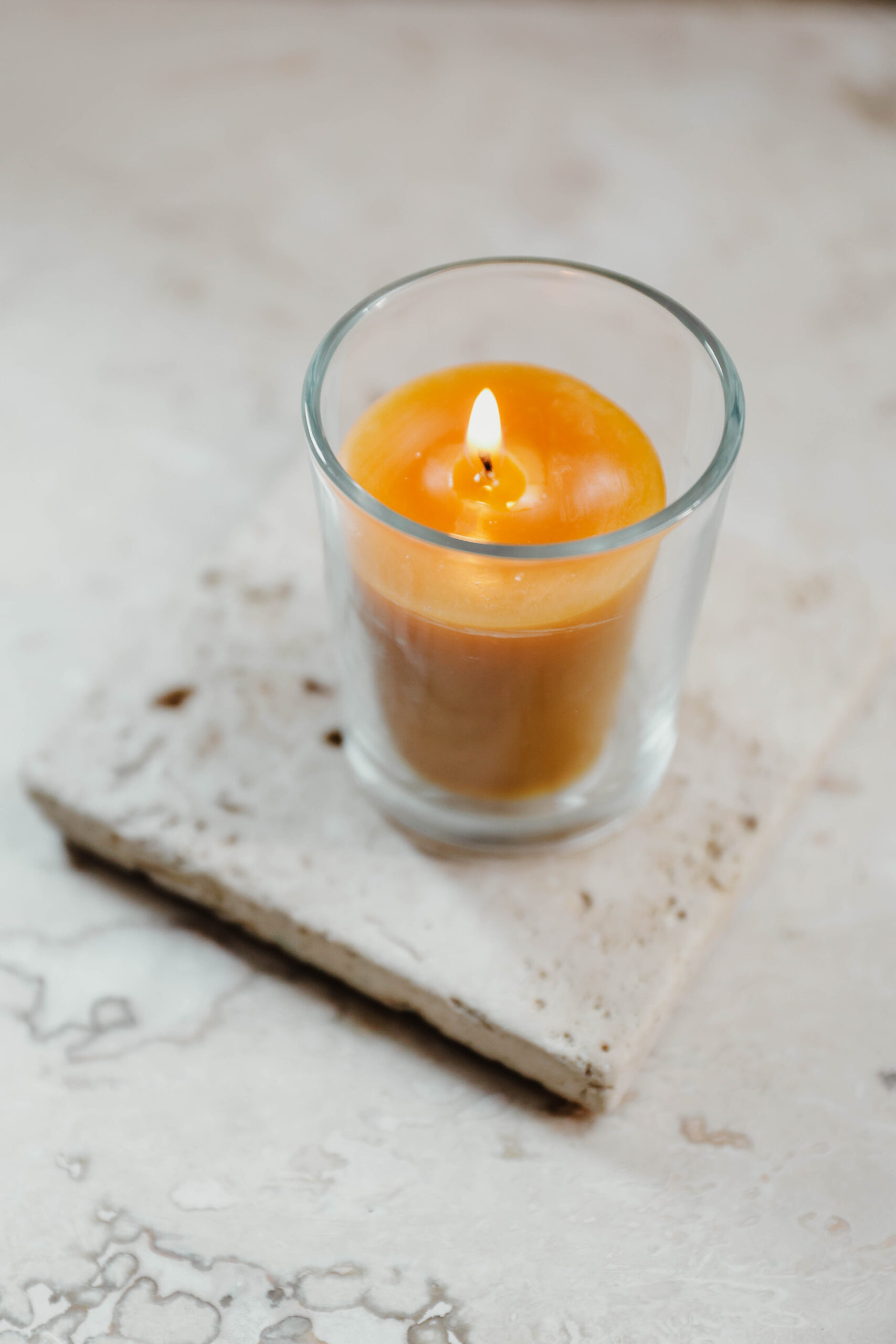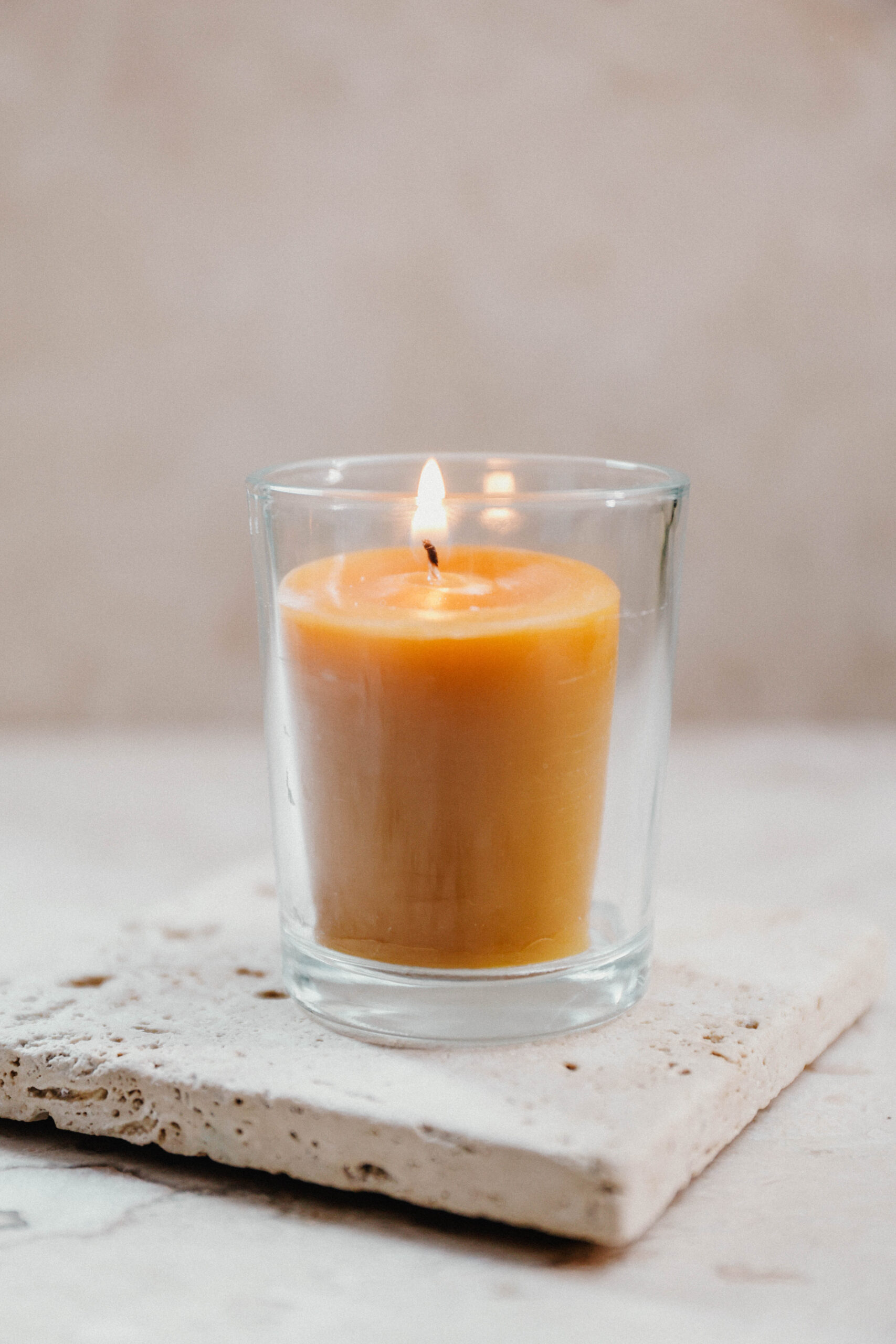 Votivele sunt lumânări care au nevoie să fie puse într-un pahar pentru a fi arse.