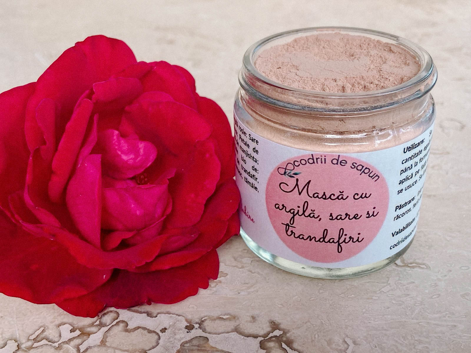 O mască de față din darurile de lux ale naturii: argile, flori, sare și esențe.
